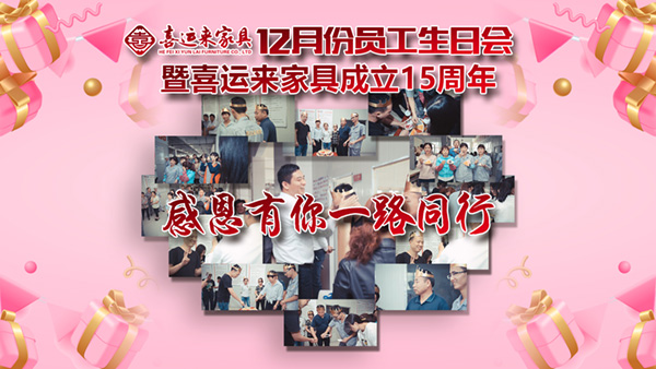 今天喜運來大家庭迎(ying)來了十二月份員工(gong)生日會,同(tong)時也紀念(nian)公司成立十五周年(nian),在這(zhe)個特殊的日子,我們(men)感恩相伴,共同(tong)成長……