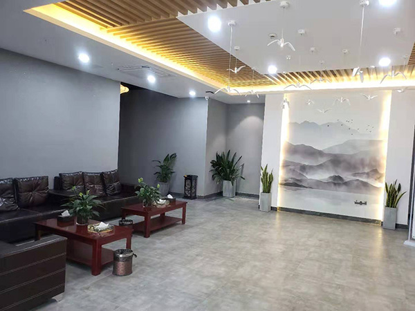 本次由喜運來定制的足療床使用整體鋼架、高密度高密度海綿等精選優質材料,并在多年經驗的老師傅手中成型,保證了產品的高質量。而在外部造型上,我們在布料上采用的是壓花面料的,鳳尾花的暗花大氣富貴,隱隱與大廳的飛鶴型吊燈以及正門的“祥云”元素遙相呼應。絳色的床體和實木茶幾在暖暖的淡黃色中并不突兀,反而和山水畫融為一體。