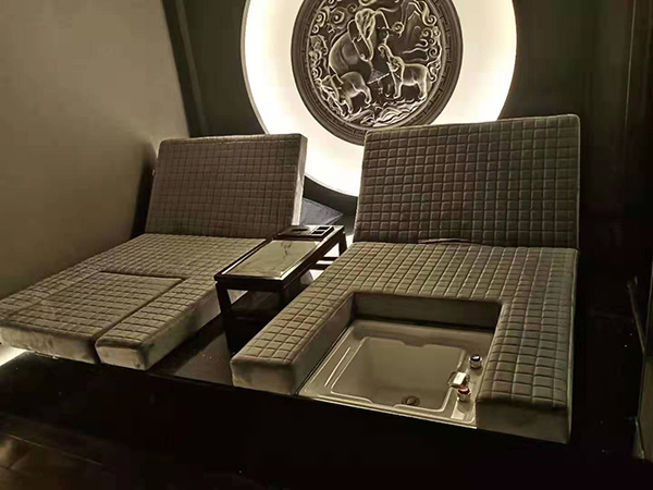 負責人劉總作為安徽省沐浴足療保健行業協會的會長,對足浴沙發這一塊有著比較深入的了解,對于材質、工藝、款式、舒適度和售后等各個細節的把控比較嚴格,整體上則強調沙發要和裝修設計風格相統一,能夠完美地融入到服務環境中,給消費者營造一種輕松、舒適和優雅的體驗氛圍。