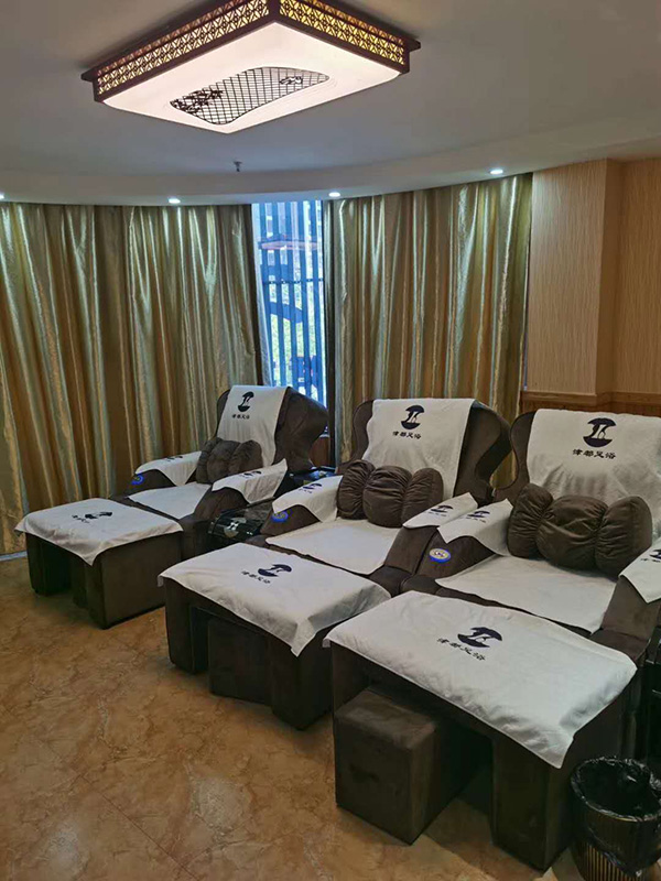 津都足浴養生會所的負責人潘總是喜運來的老客戶了,之前兩家門店的足浴沙發都是從喜運來采購的,對雙方之間的合作非常滿意。