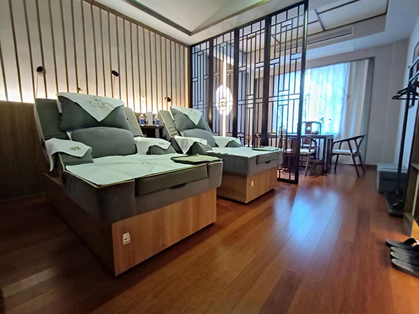 門店內部環境采用禪式風格,追尋傳統自然的內斂雅致和清淡溫和,完美傳達禪文化追求生命自覺和精神境界的文化內核。為了能夠找到符合店內裝修風格,同時匹配企業文化和氛圍的足浴沙發等硬件設備,兩位老板通過網絡渠道主動搜索產品供應商,這才與我們喜運來家具結緣。