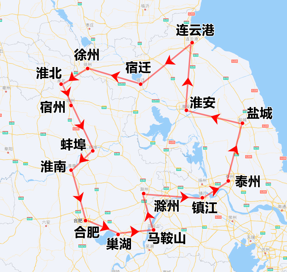 巡檢路線公示:合肥-桐城-池州-馬鞍山-南京-揚州-常州-蘇州-嘉興-湖州-宣城-黃山。