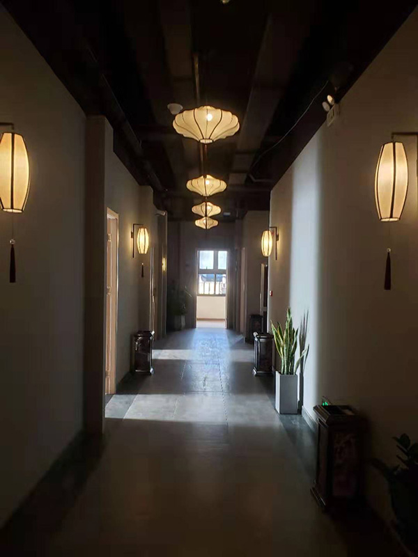 本次由喜運來定制的足療床使用整體鋼架、高密度高密度海綿等精選優質材料,并在多年經驗的老師傅手中成型,保證了產品的高質量。而在外部造型上,我們在布料上采用的是壓花面料的,鳳尾花的暗花大氣富貴,隱隱與大廳的飛鶴型吊燈以及正門的“祥云”元素遙相呼應。絳色的床體和實木茶幾在暖暖的淡黃色中并不突兀,反而和山水畫融為一體。