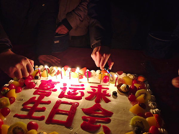 在搖曳的燭光中,壽星許下自己的生日愿望,整個生日會伴隨著歡快的《生日快樂》歌聲迎來了高潮,現場爆發出陣陣歡呼。