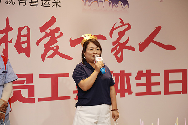 下午13點45分,生(sheng)日會在主持(chi)人(ren)熱情洋溢的(de)(de)開場白中拉(la)開了序幕。三位壽星如眾星捧月般(ban)站在舞臺中央,全體(ti)員工用最(zui)簡單的(de)(de)話語,最(zui)真(zhen)誠的(de)(de)祝福(fu)祝他們:生(sheng)日快樂!